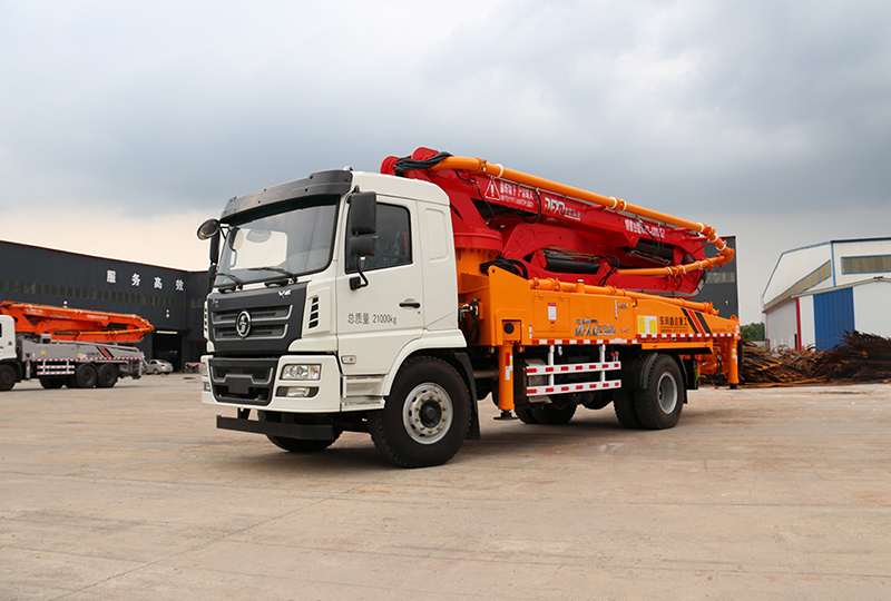 3.施工適應性有余混凝土泵車具有靈活性,而且臂架高度越高,澆注高度和布料半徑就越大,施工適應性也越強,放在施工中應盡量選用高臂架混凝土泵車。臂架長度28~36m的混凝土泵車是市場上量大面廣的產品,約占75%.長臂架混凝土泵車將成為施工中的主要機型。此外,有混凝土泵車受到汽車底盤承載力的限 制,臂架高度超過42m時造價增加很大,且受施工現場空間的限 制,故一般很少選用。